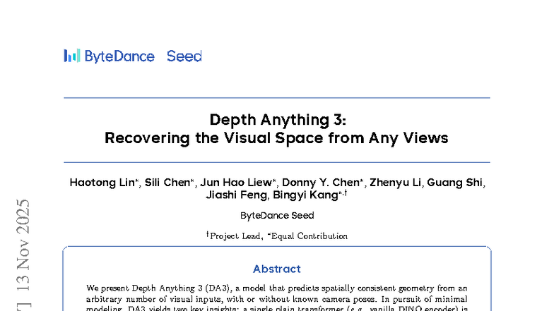 2511 - ML Paper - Depth Anything 3: Recovering the Visual Space from ...