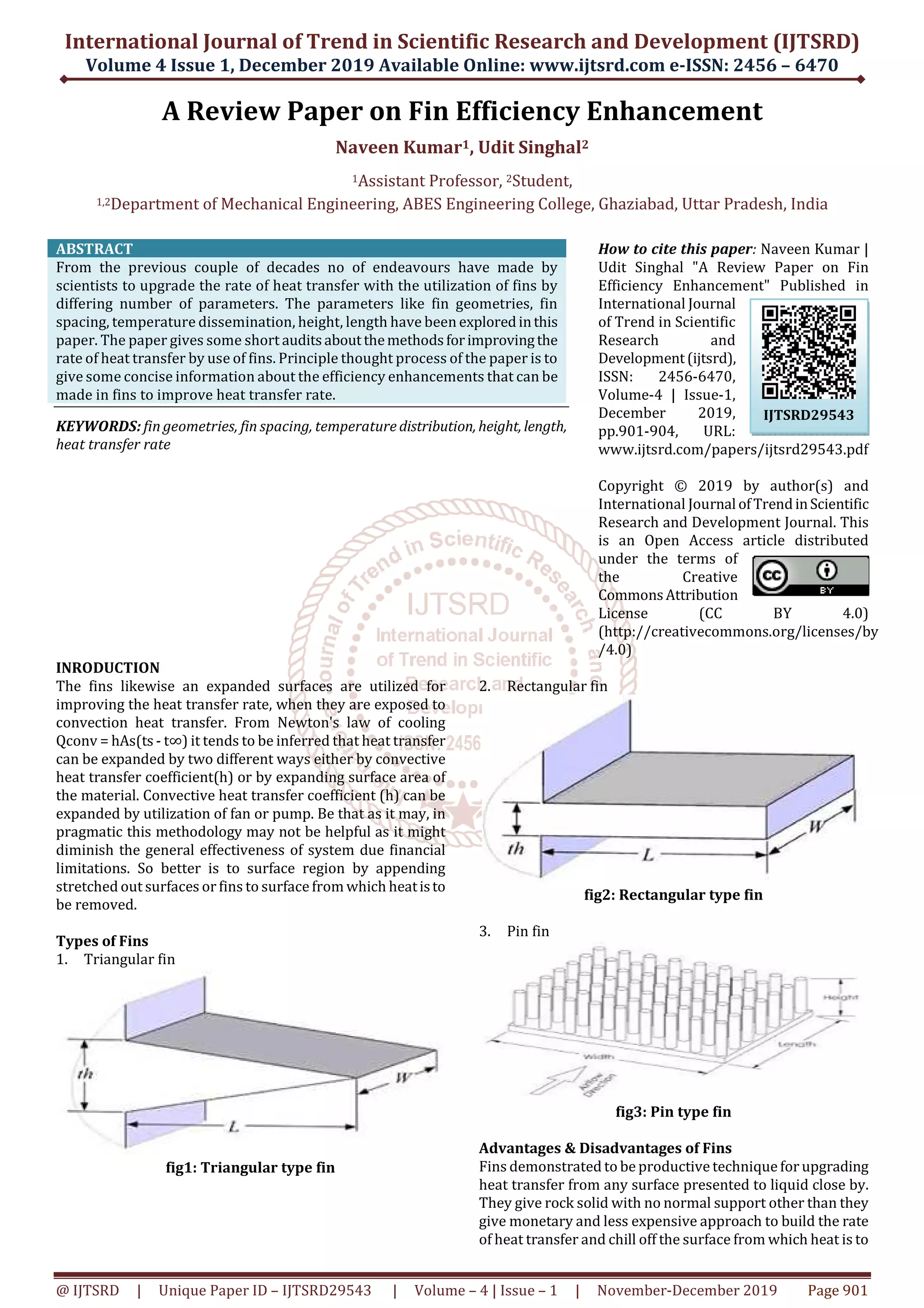 A Review Paper on Fin Efficiency Enhancement | PDF