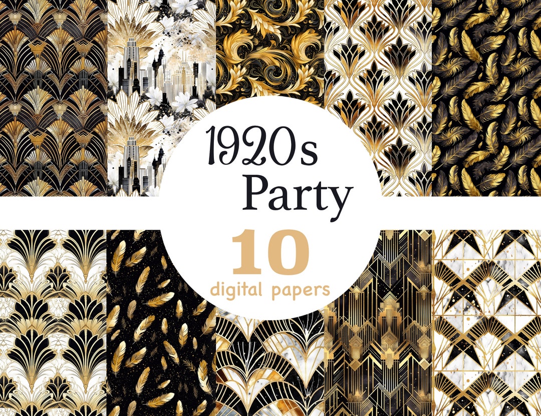 Black & Gold Art Deco Digital Paper: Flapper Patterns (JPEG) - Etsy