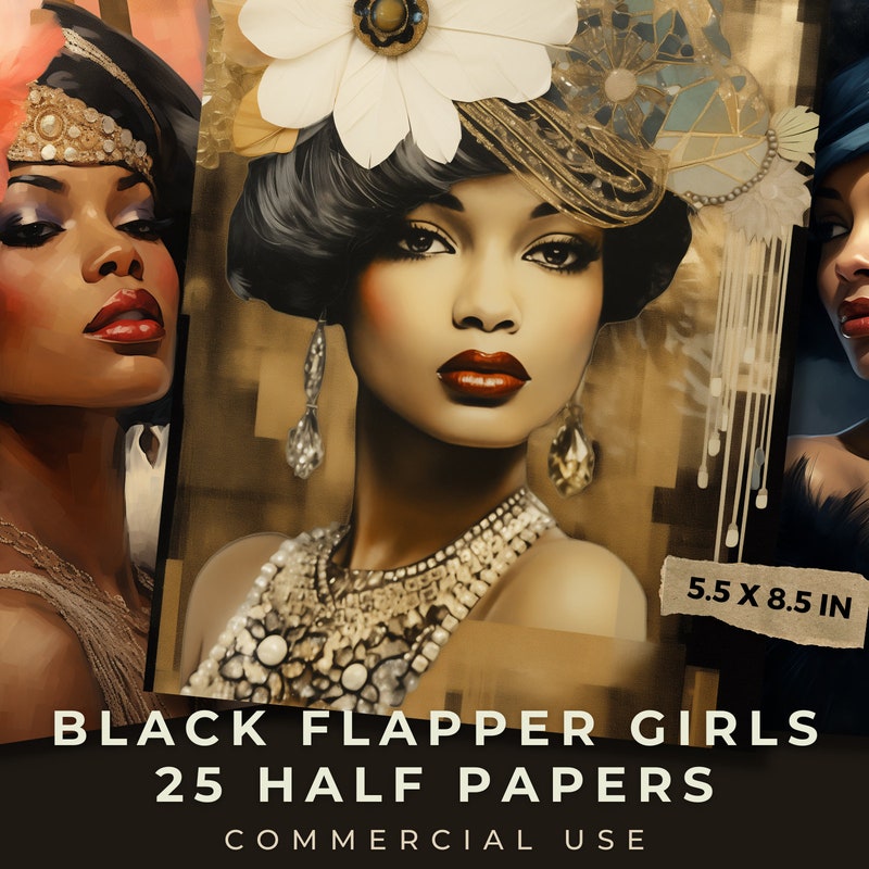 Roaring Twenties Black Flapper Girls / Mixed Media / Junk Journal Half ...