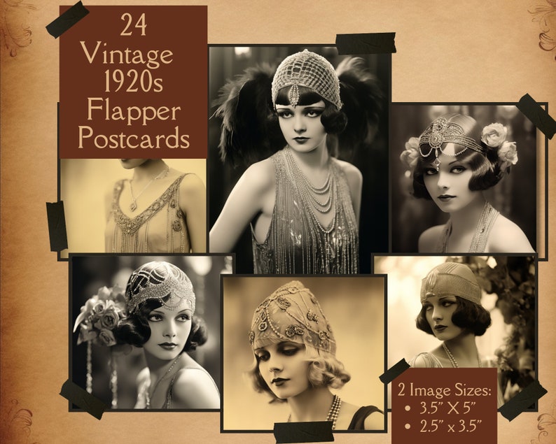 Vintage Flapper Postcards. Digital Paper of Vintage 1920s Ephemera for ...