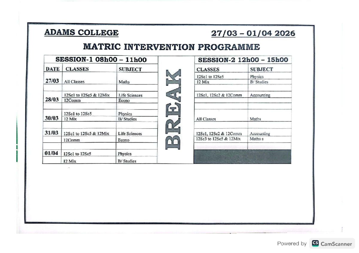 MIP timetable - How to make time to make the money - ADAMS COLLEGE 2026 ...