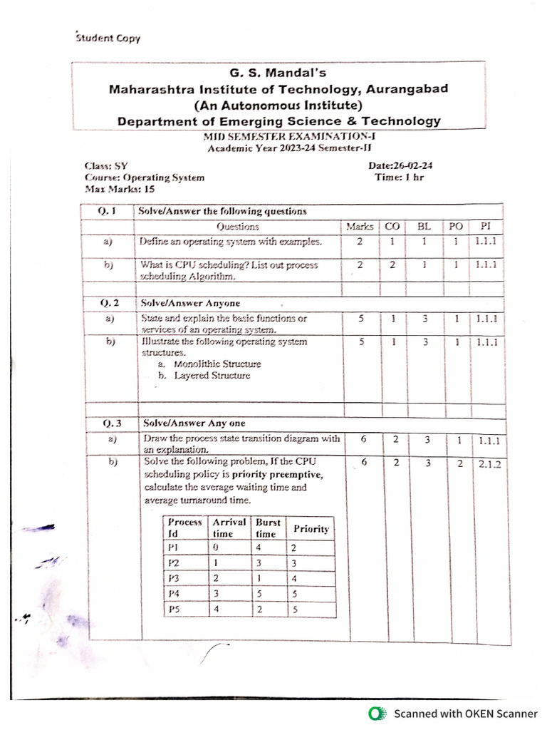 OS Solved Question Papers | PDF | Process (Computing) | Thread (Computing)