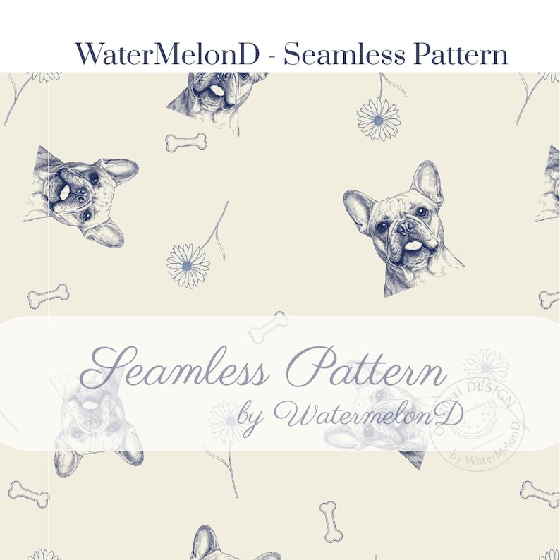 French Bulldog Seamless|toile De Jouy Digital Paper|blue Seamless ...