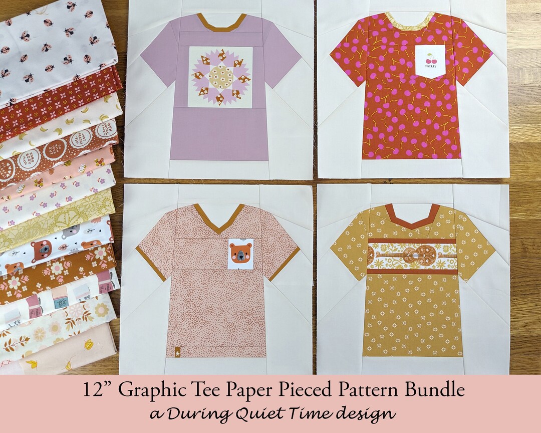 12" Graphic Tee Paper Pieced Pattern Bundle - Etsy