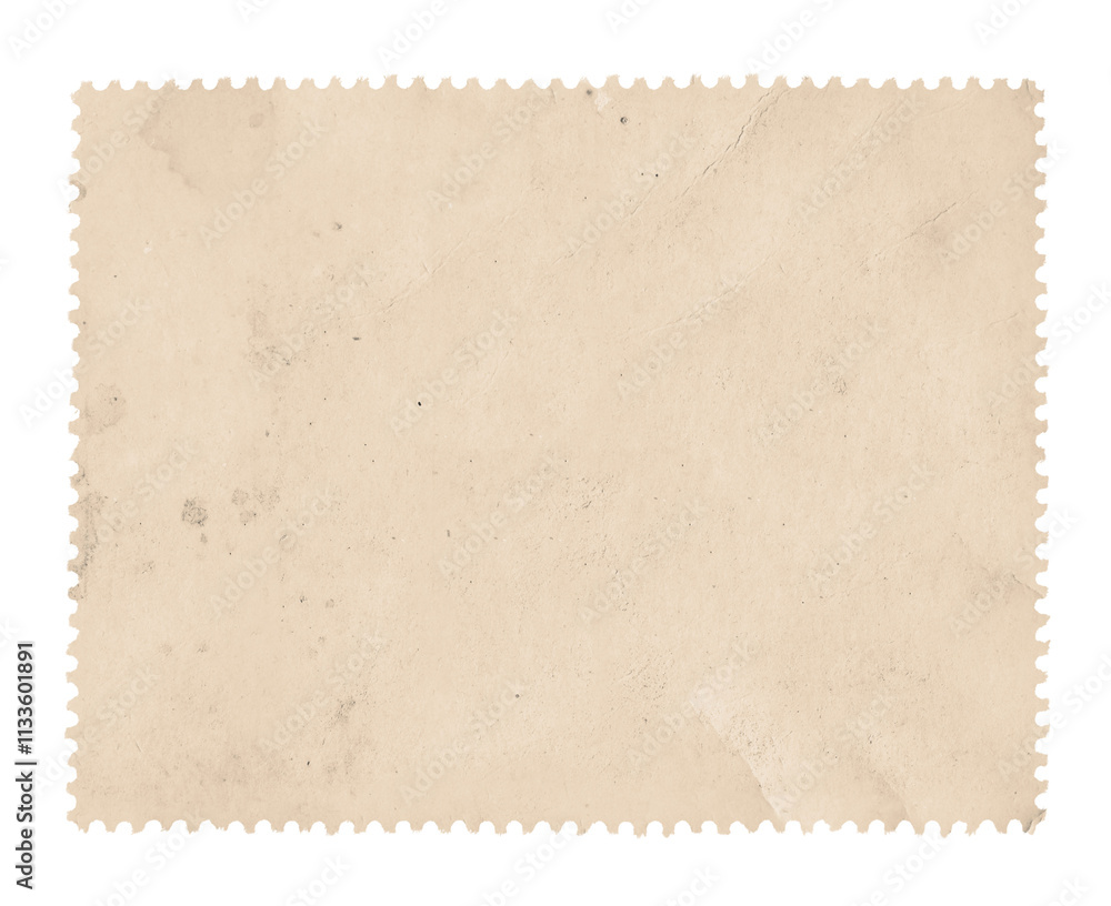 Blank beige stamp, paper texture, jagged edges, postage concept, cut ...