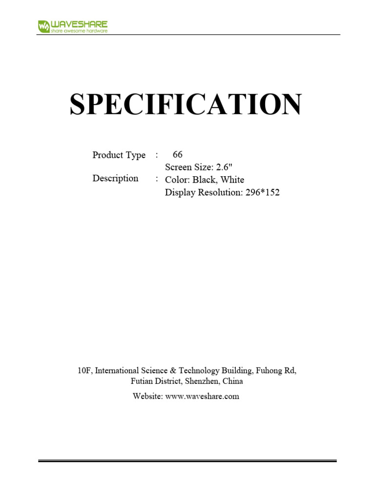 2.66inch e Paper Specification | PDF | Microcontroller | Computer ...