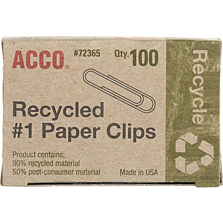 ACCO Paper Clips 1000 Total Silver Recycled 100 Per Box Pack Of 10 ...
