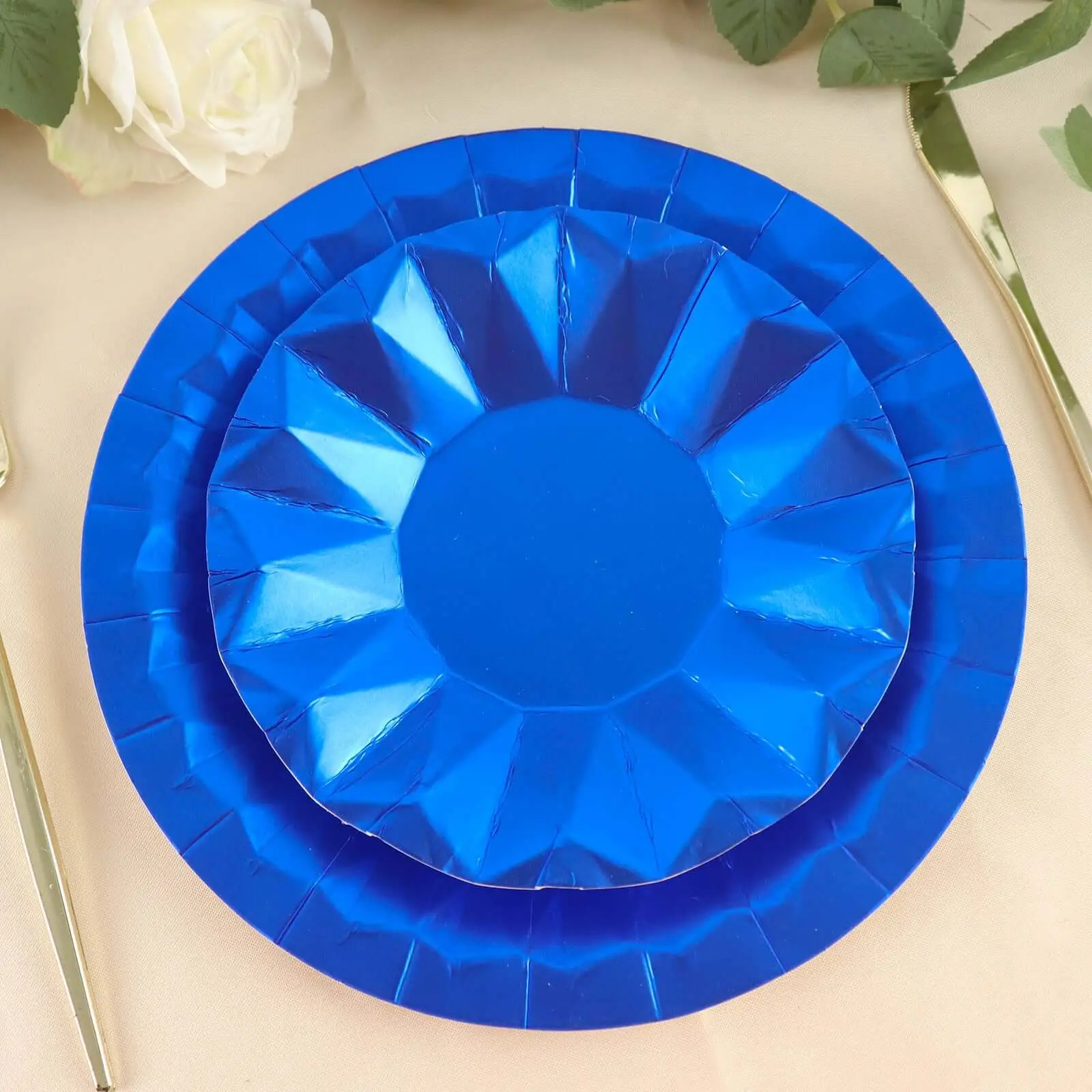 25-Pack Paper Round Dessert Plates 7" Royal Blue with Geometric Prism ...