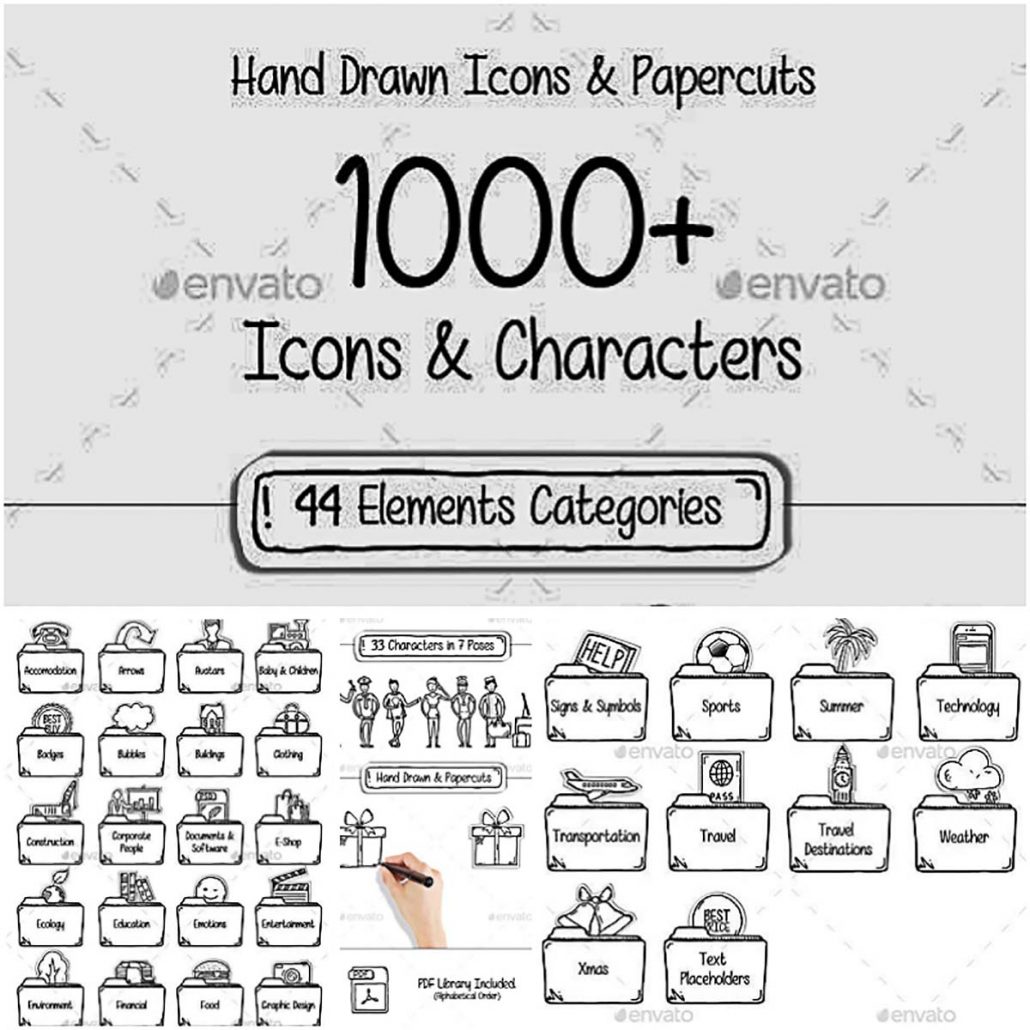 Hand drawn icons papercuts | Free download
