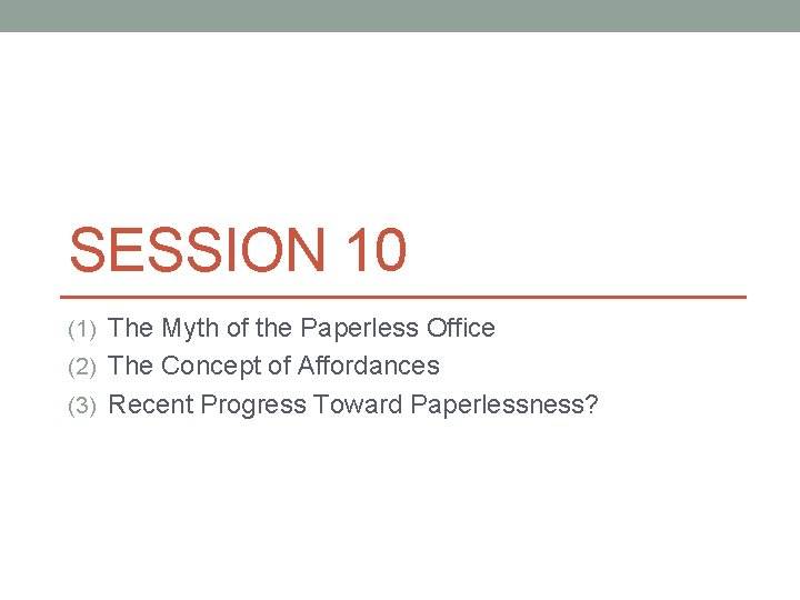 SESSION 10 1 The Myth of the Paperless
