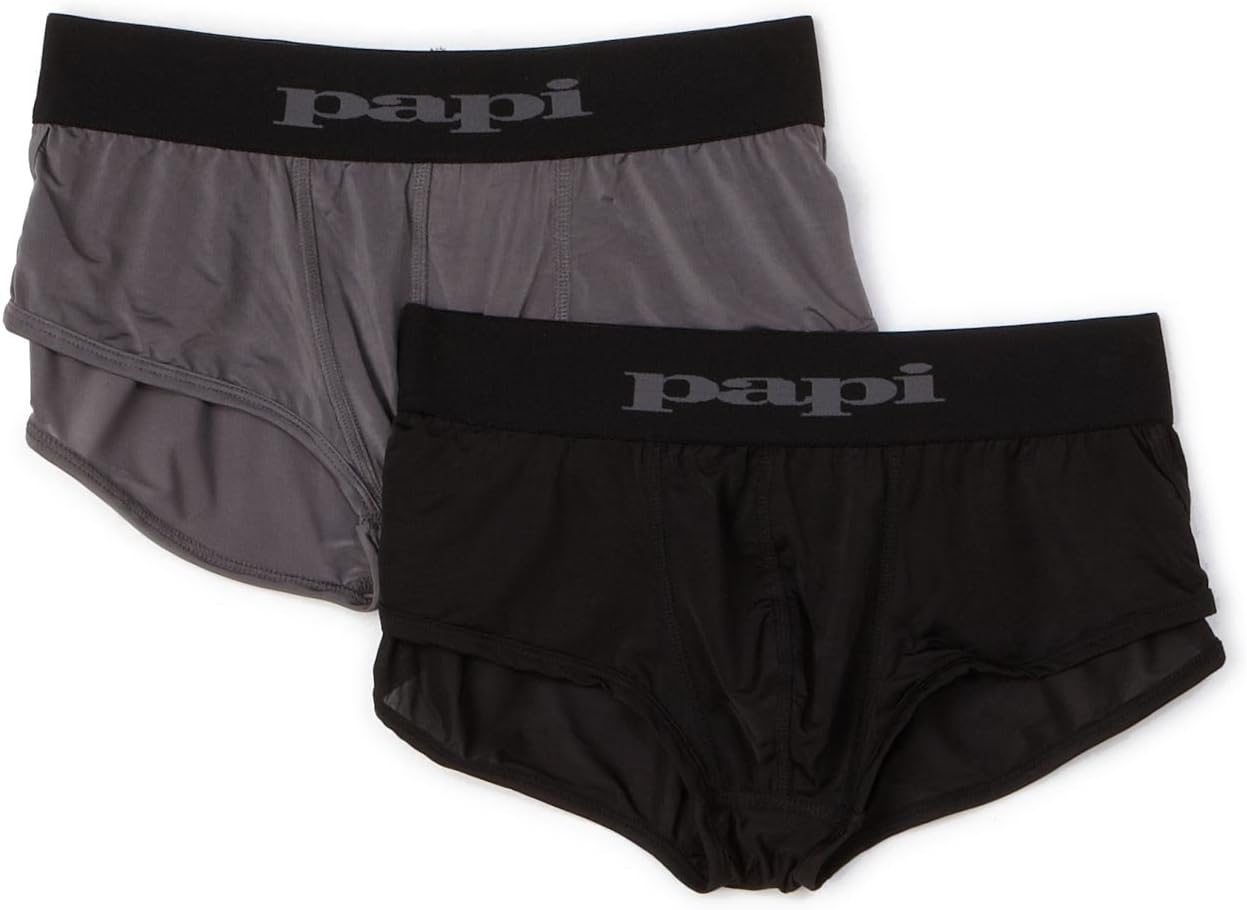 Men's Papi 626182 Cool 2 Brazilian Trunks - 2 Pack (Black/Grey S ...