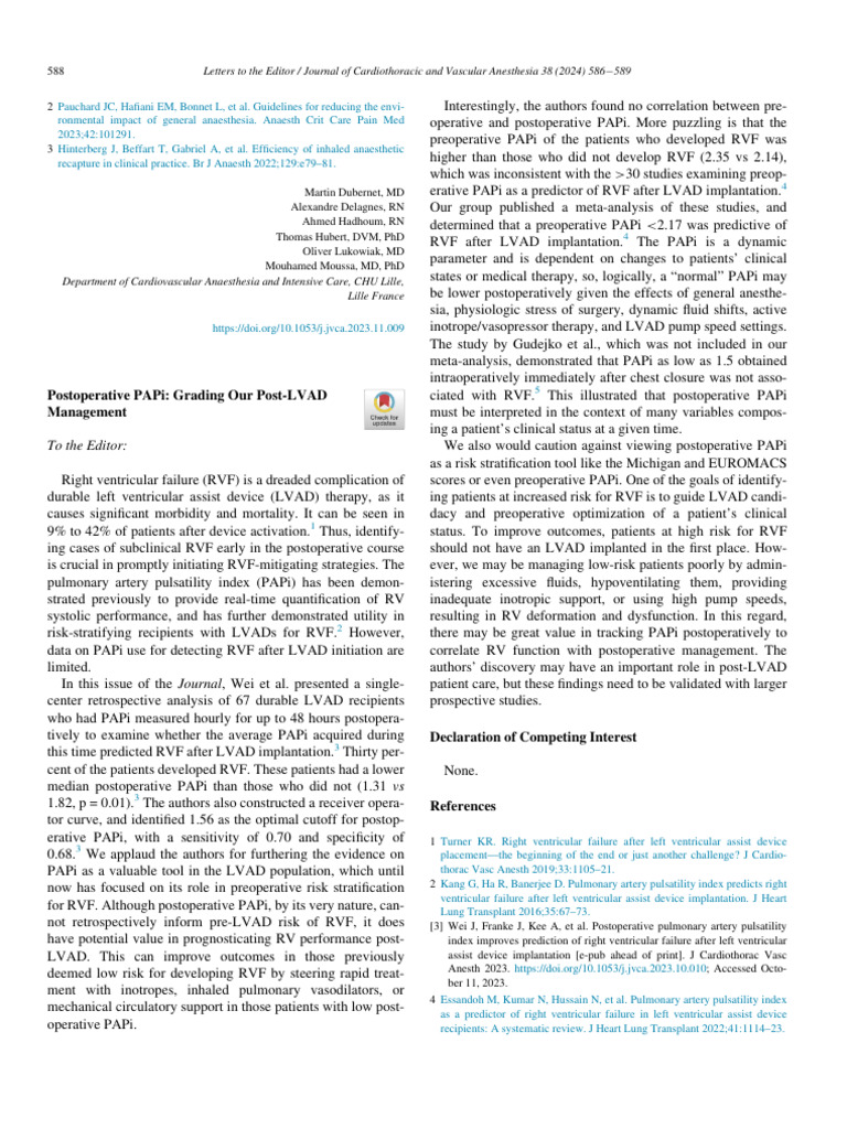 Postoperative PAPi: Grading Our Post-LVAD Management - Journal of ...