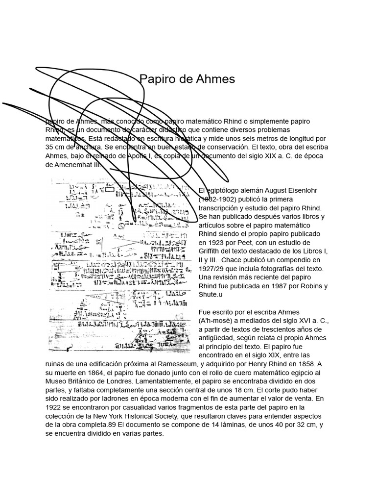 Papiro Matemático Rhind: Ahmes y su legado | PDF | egiptología ...