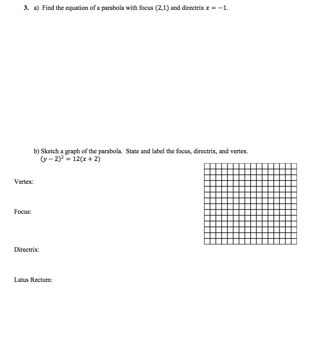 Solved 3. a) Find the equation of a parabola with focus | Chegg.com
