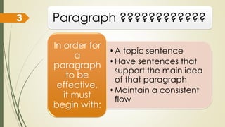 WRITING PARAGRAPH in English, topic sentence, supporting sentence | PPTX