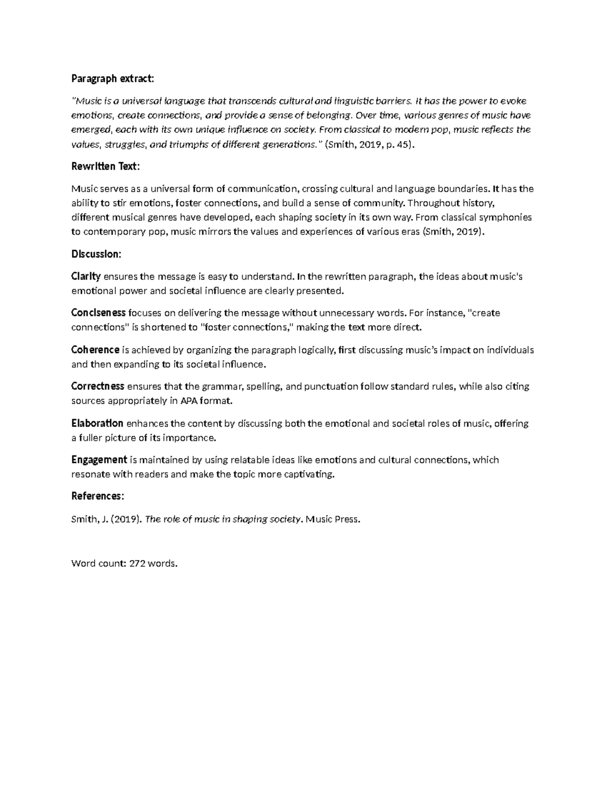 Discussion UNIT 1 - ENGL 1102 DF UNIT 1 - Paragraph extract: "Music is ...