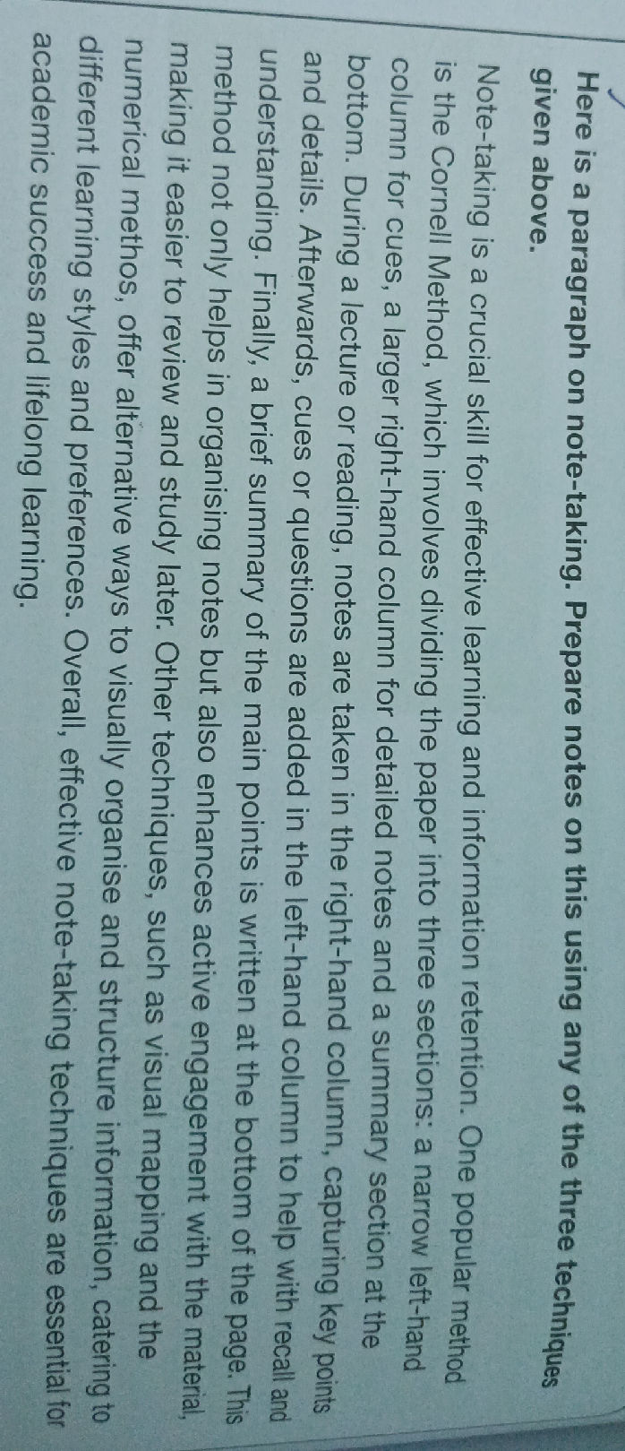 Here is a paragraph on note-taking. Prepare | StudyX