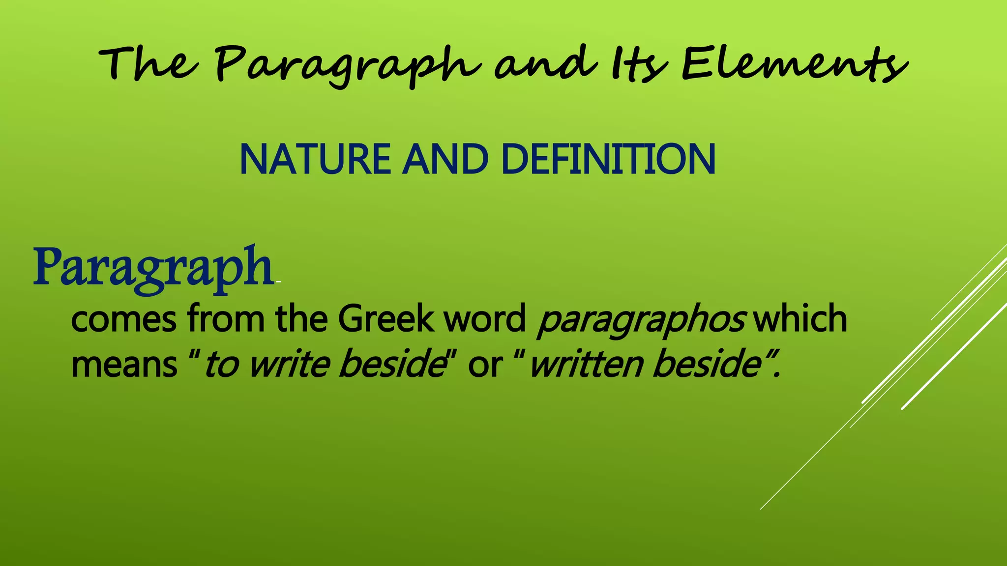 Paragraph - Paragraph The term paragraph comes from the Greek word ...