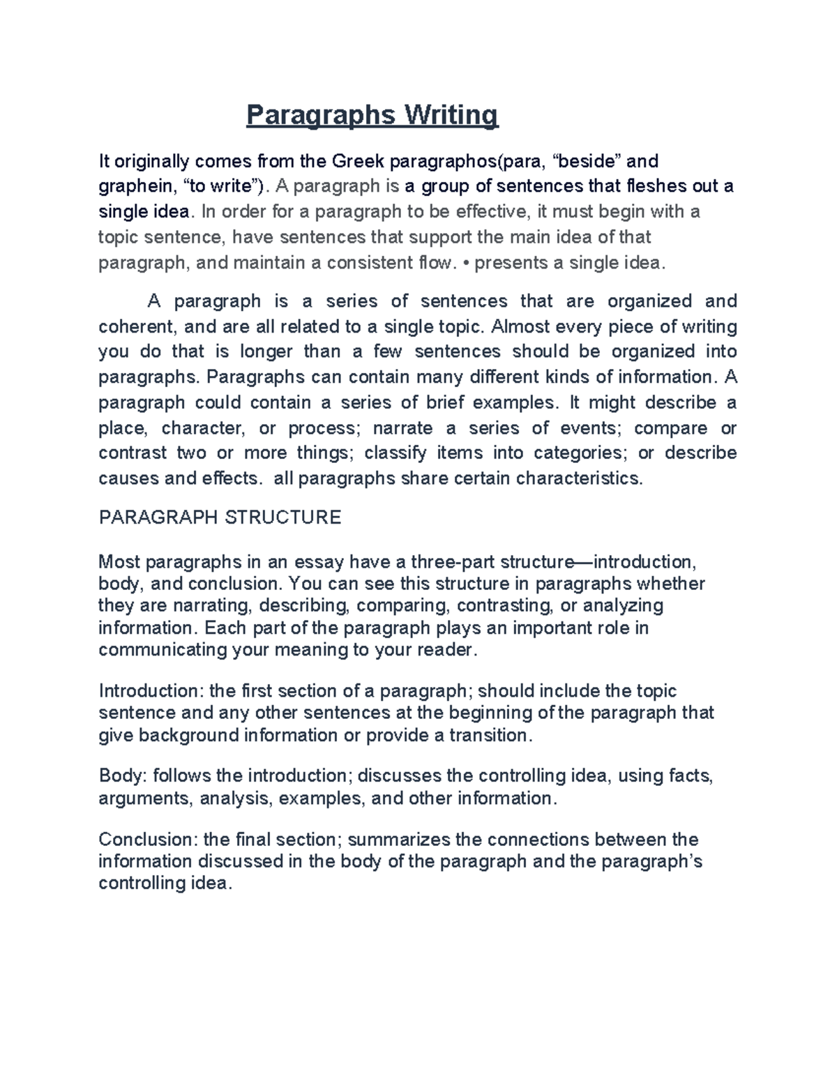Effective Paragraph Writing Techniques and Structure - Studocu