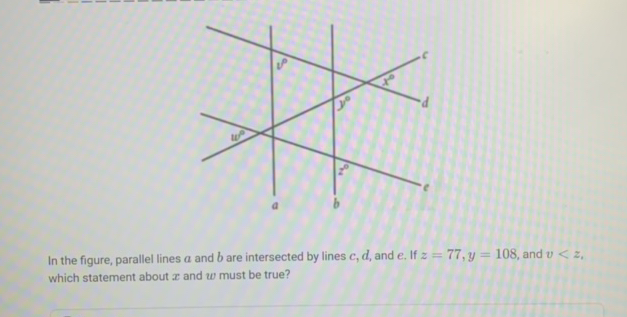 The figure shows two parallel lines intersected by a transversal. Which ...