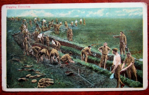 WWI Postcard Digging Trenches Military Soldier Uniform Hard Labor ...