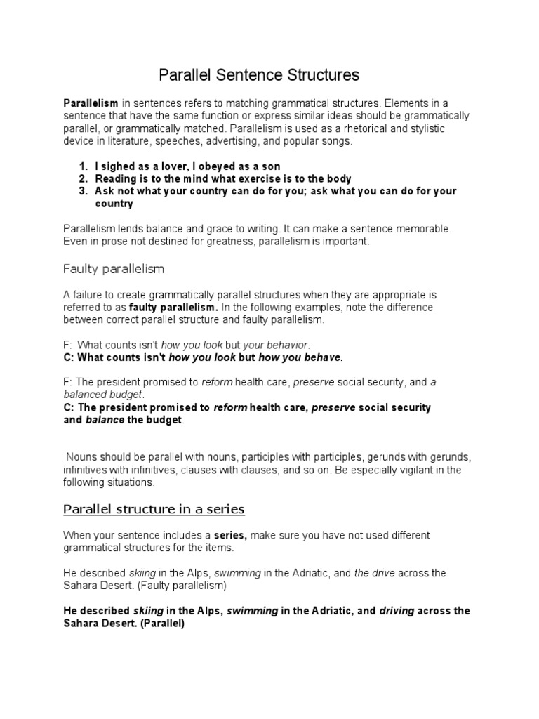 Parallel Sentence Structures | PDF | Verb | Sentence (Linguistics)