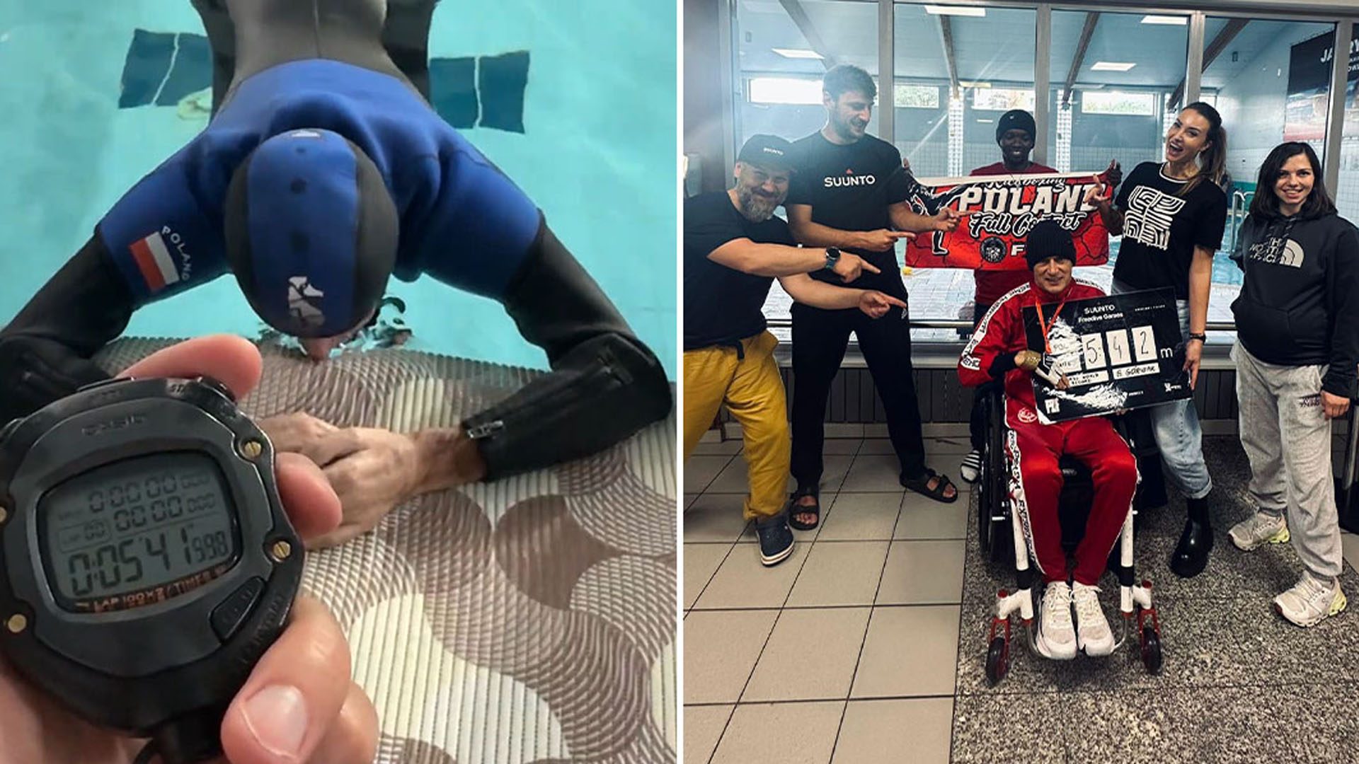 Polish man with paralysis breaks underwater breath-holding record