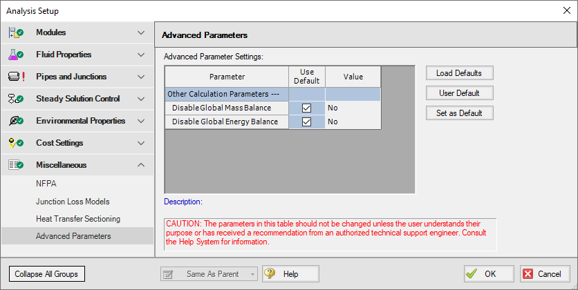 Advanced Parameters Panel