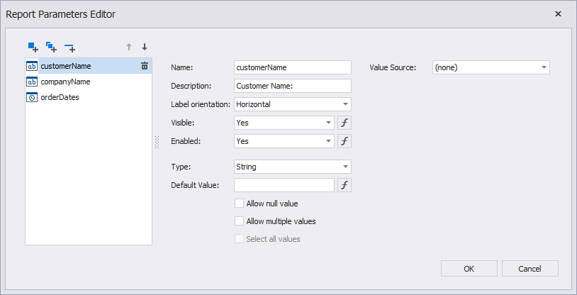 Designing Reports > Use Report Parameters > The Parameters Panel