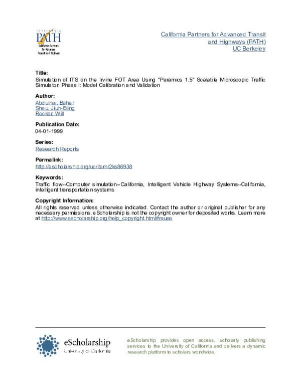 (PDF) Simulation of ITS on the Irvine FOT area using the'Paramics 1.5 ...