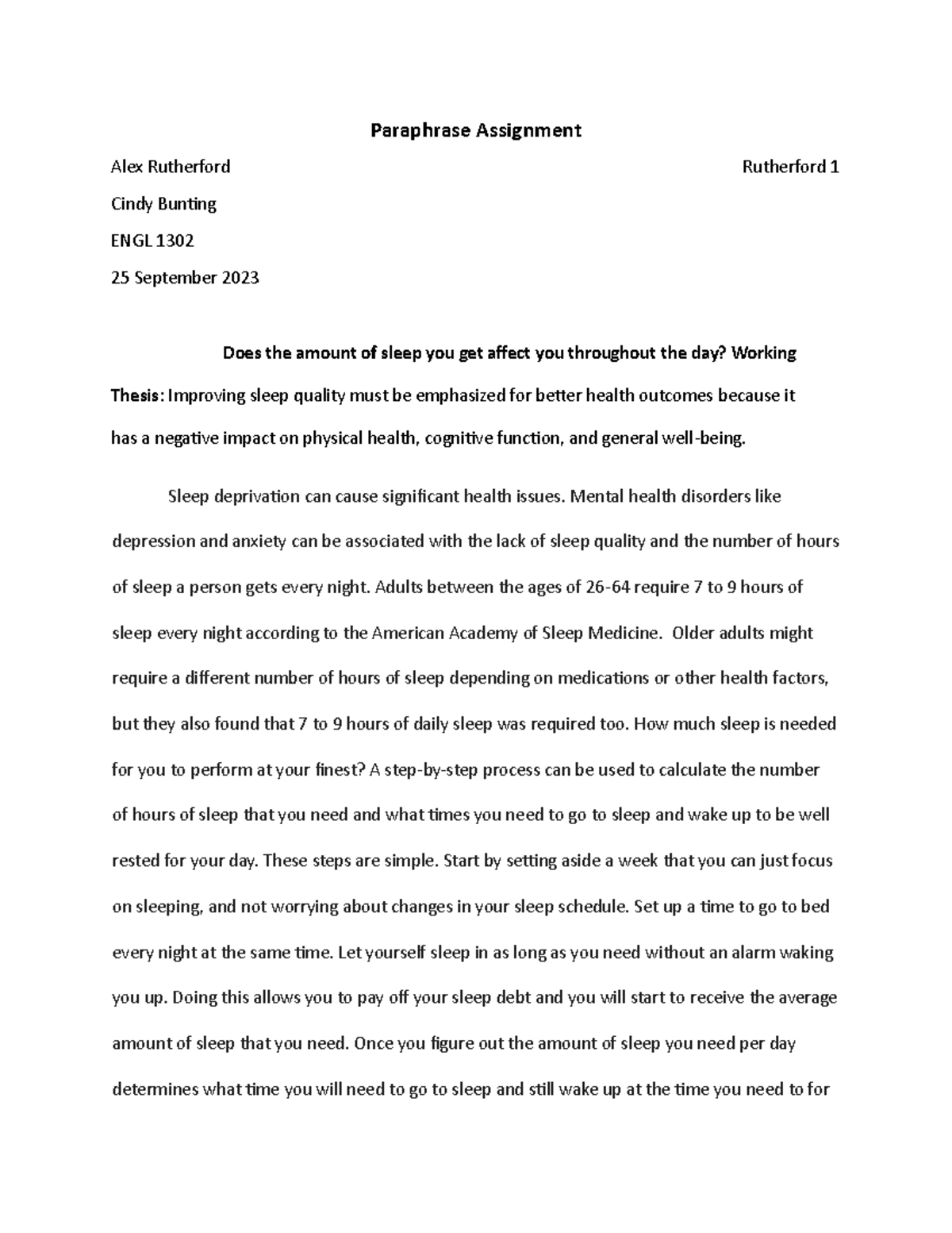 Paraphrasing Assignment Final Draft 0.2 | PDF