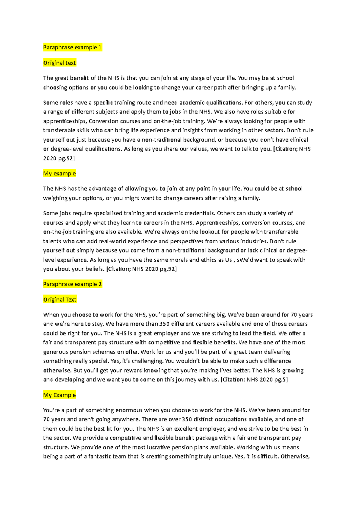 Assignment 2 Draft: Paraphrasing and Quotation Examples - Studocu