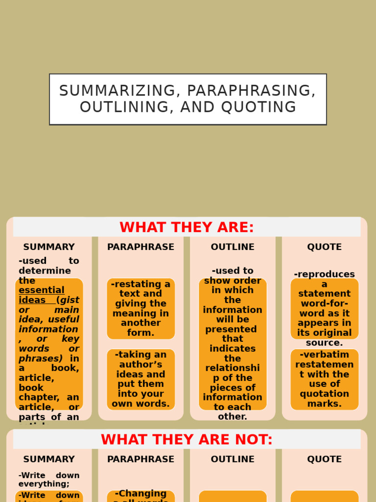 Summary, Paraphrase, Outline, Quote Guide | PDF | Cognition | Communication