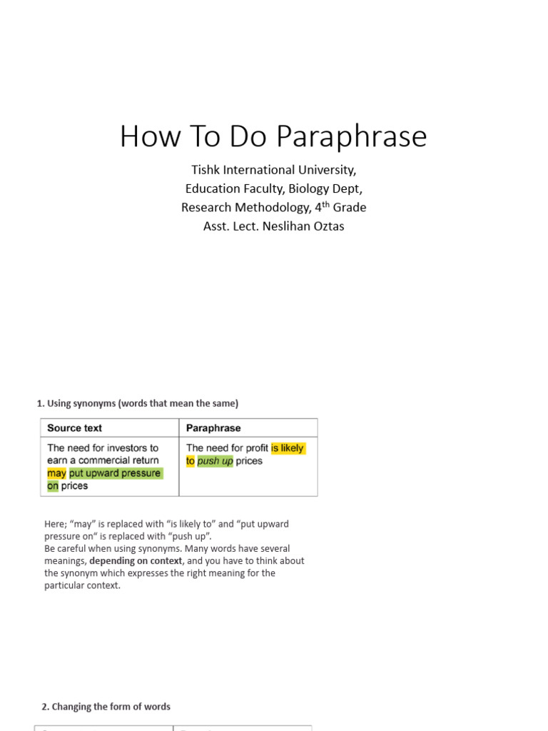Effective Paraphrasing Techniques Guide | PDF | Syntax | Linguistics