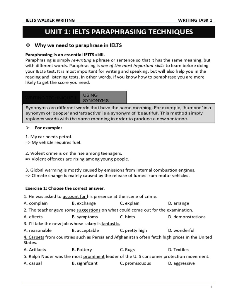 IELTS Paraphrasing Techniques Guide | PDF | Career & Growth
