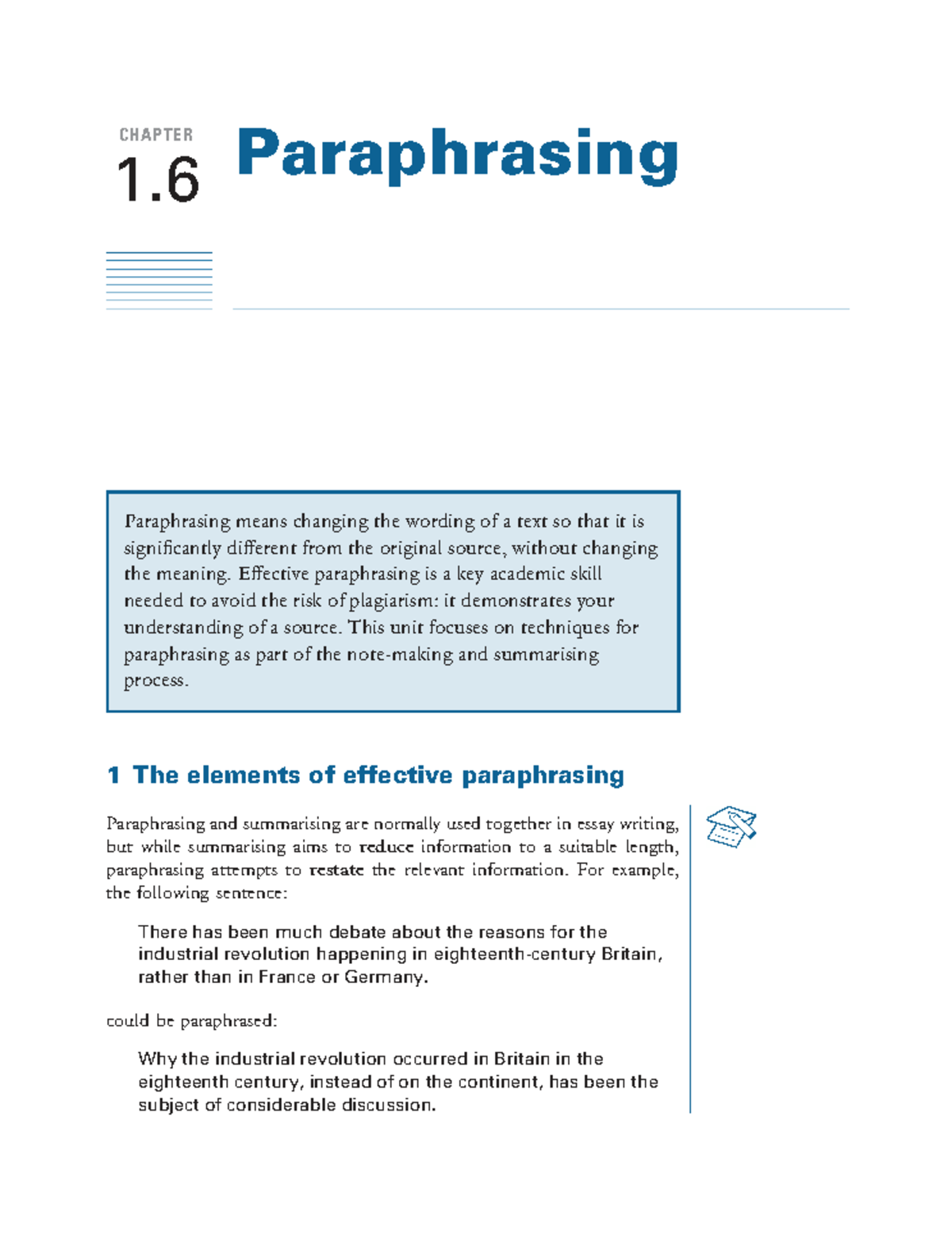 Paraphrasing & Summarizing Techniques: Chapter 1.6 Guide - Studocu