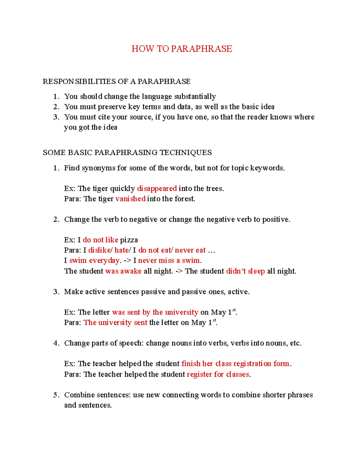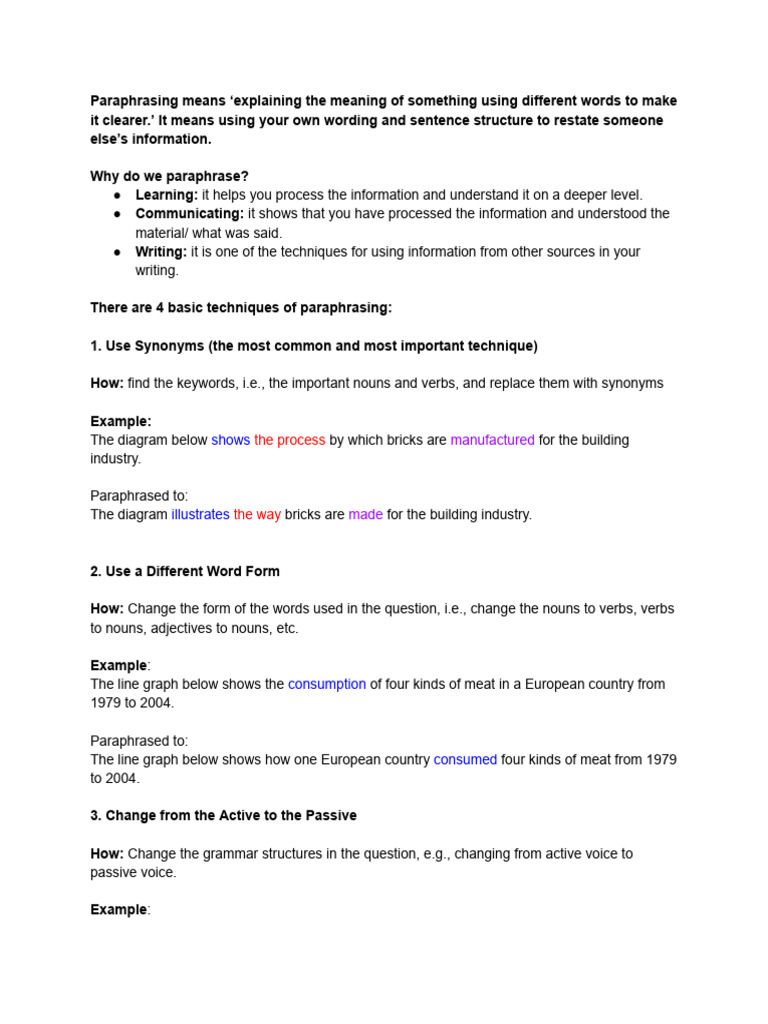 How to Paraphrase (from ESL library) - Mme. Drummond | Library | Formative