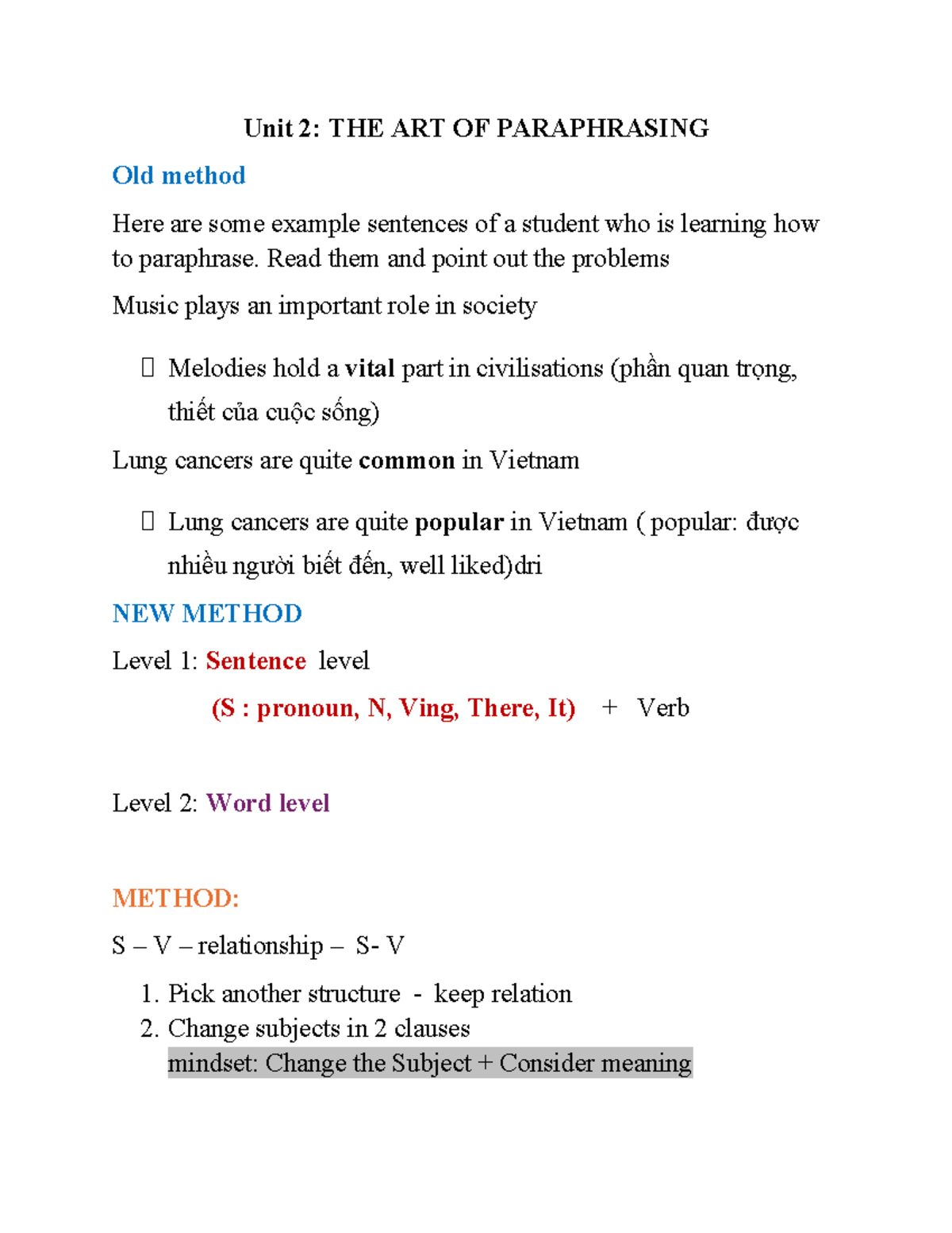 Unit 2: The Art of Paraphrasing Techniques and Examples - Studocu