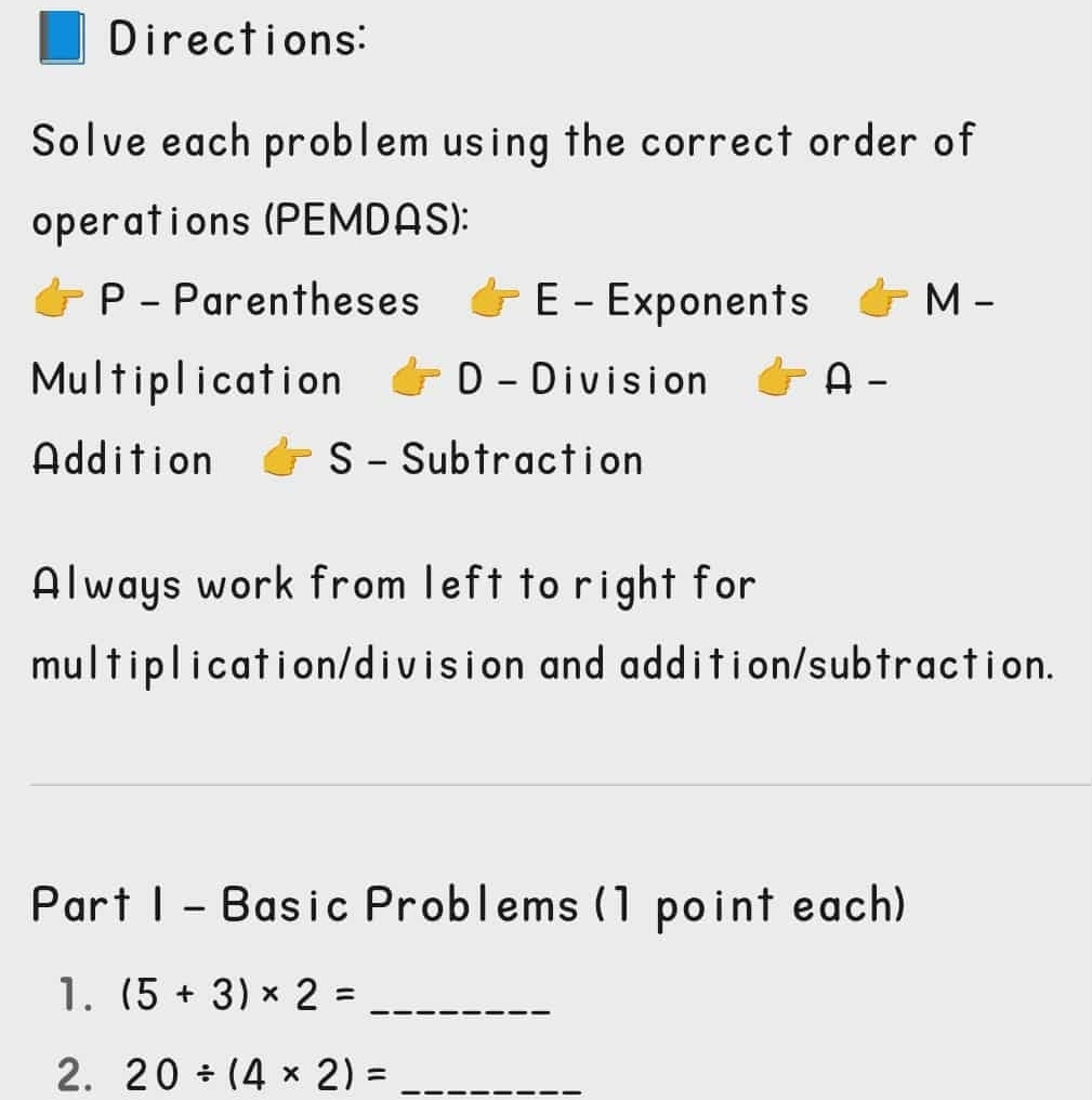 Math Worksheets: Order of Operations or PEMDAS - Worksheets Library