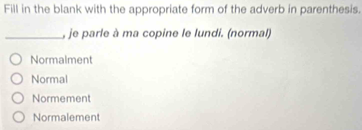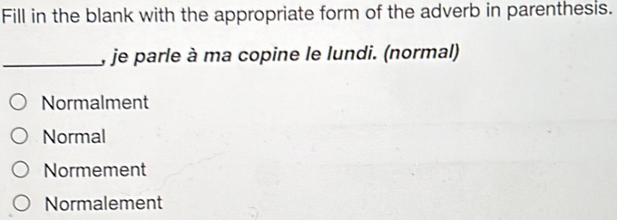 Solved: Fill in the blank with the appropriate form of the adverb in ...