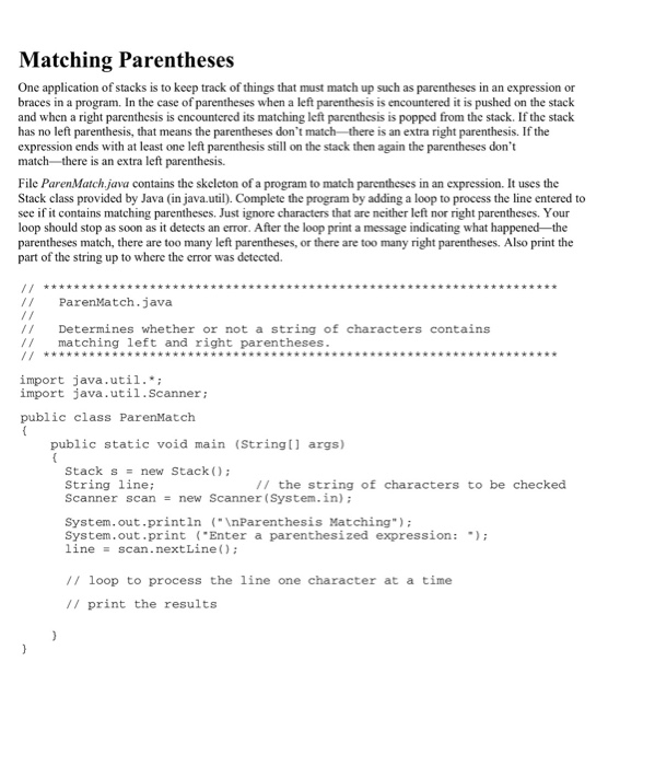 Solved Matching Parentheses One application of stacks is to | Chegg.com