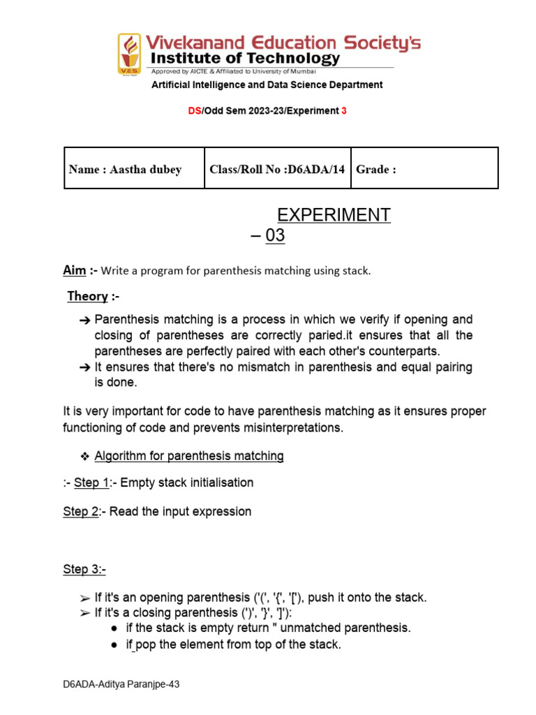 Program for Parenthesis Matching Using Stack | PDF | Bracket | Computer ...