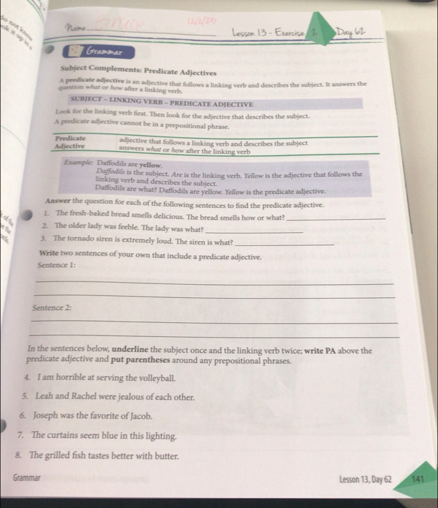 Solved: no t kno Name_ ok it up in . Grammar Subject Complements ...