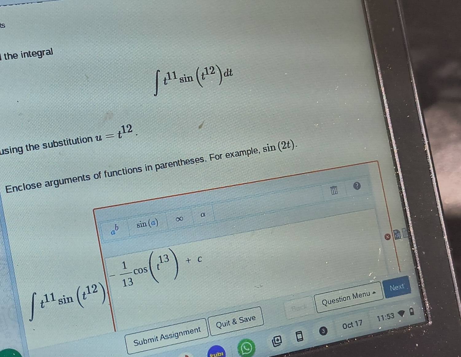 Solved: ts the integral ∈t t^(11)sin (t^(12))dt using the substitution ...