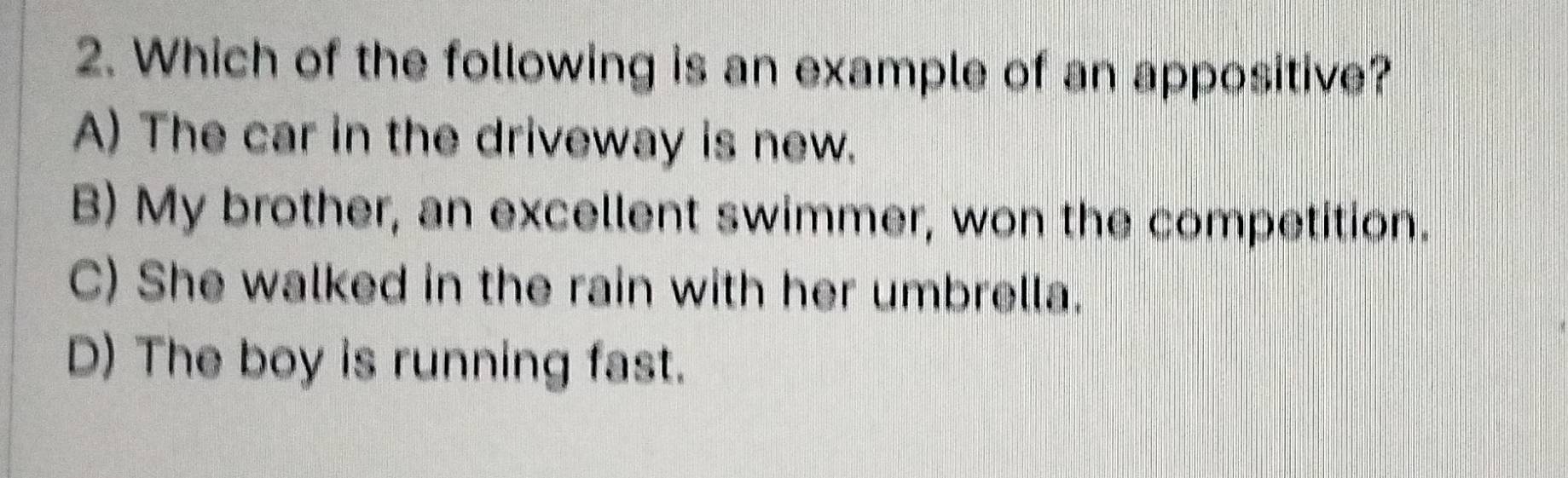 Telah dijawab:Which of the following is an example of an appositive? A ...