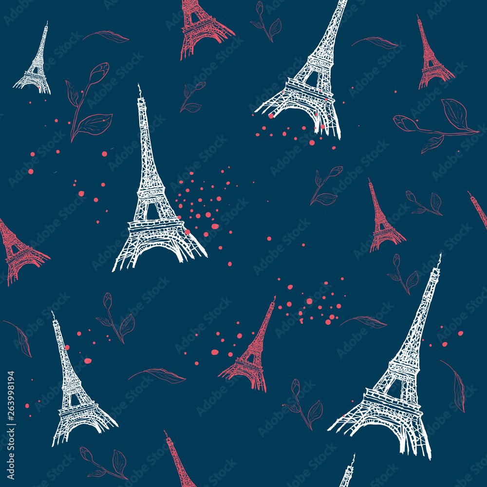 Paris seamless pattern with Hand drawn sketch elements - eiffel towerh ...
