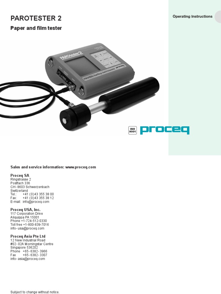 proceq PS8000 Paper Roll Hardness Tester Instruction Manual