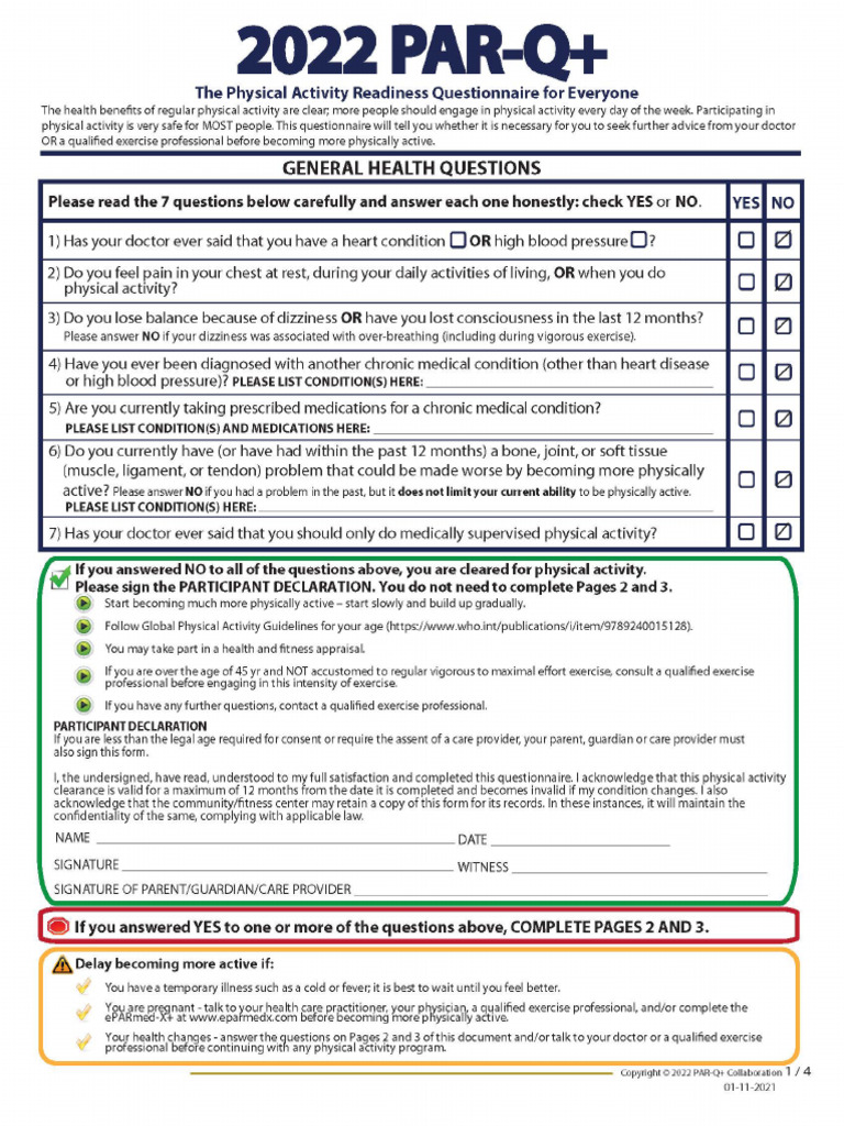 PAR-Q: Physical Activity Readiness Questionnaire for Health Assessment ...