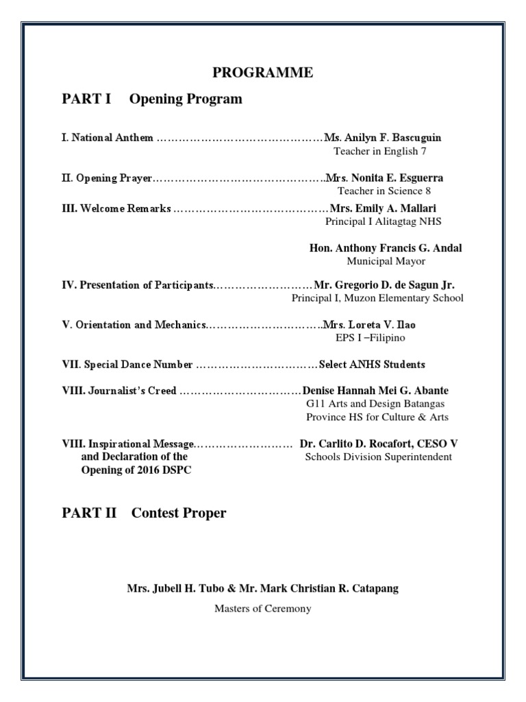 Programme PART I Opening Program | PDF